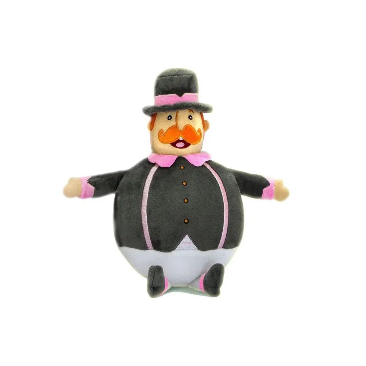 Feito com pelúcia super macia e antialérgica, o Bita tem acabamento impecável, costuras reforçadas e detalhes bordados no rosto e traje — incluindo seu icônico chapéu, bigode laranja e roupa elegante em tons de preto, rosa e branco.