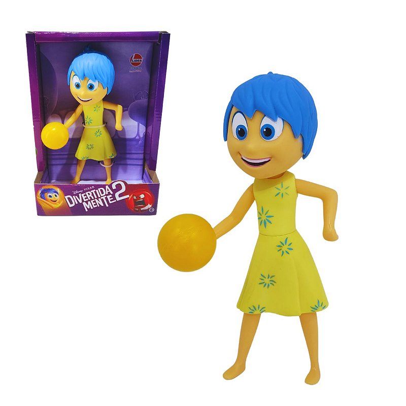 Detalhes fiéis: Com uma incrível semelhança ao personagem Alegria, este boneco possui a personagem segurando a bola, trazendo toda a personalidade do desenho.