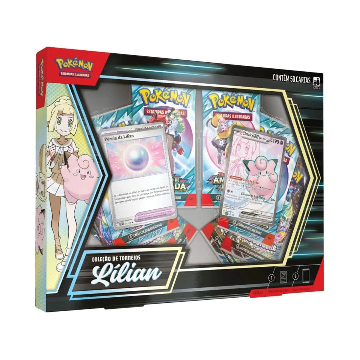 Pokémon TCG Coleção de Torneios Lílian – Box com 50 Cartas, 8 Boosters e 2 Cartas Holográficas