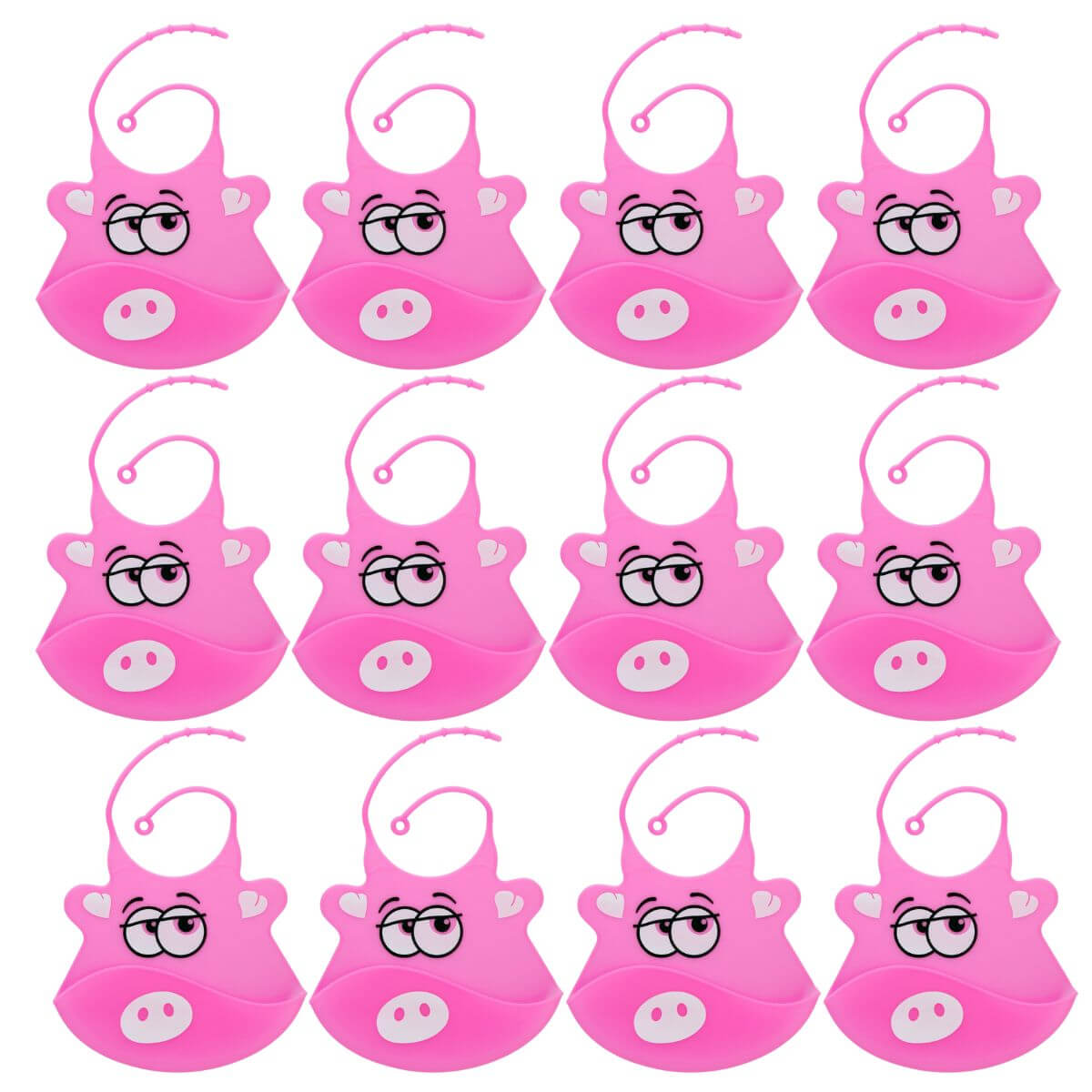 Rosa com desenho de porquinho: O babador rosa estampa um porquinho fofo, trazendo um toque de diversão.